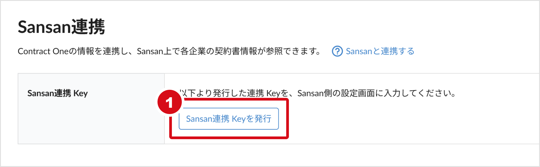 まずは、Contract One側で連携に必要なSansan連携 Keyを発行・取得します。