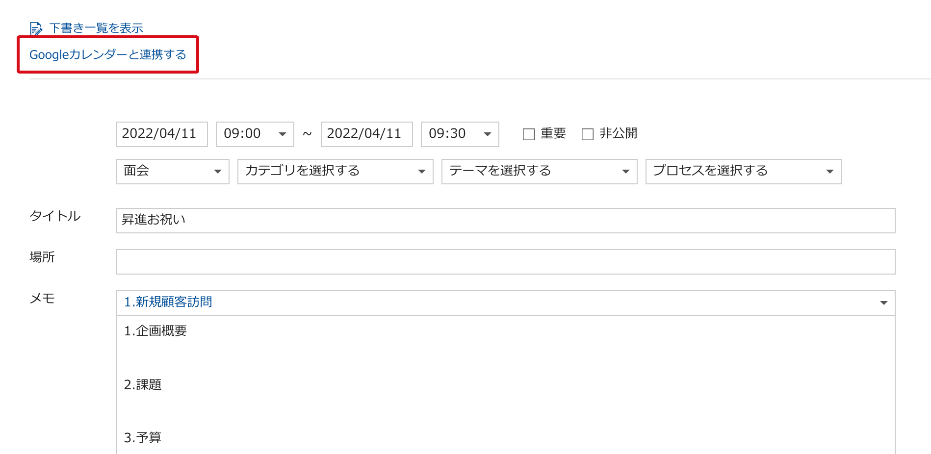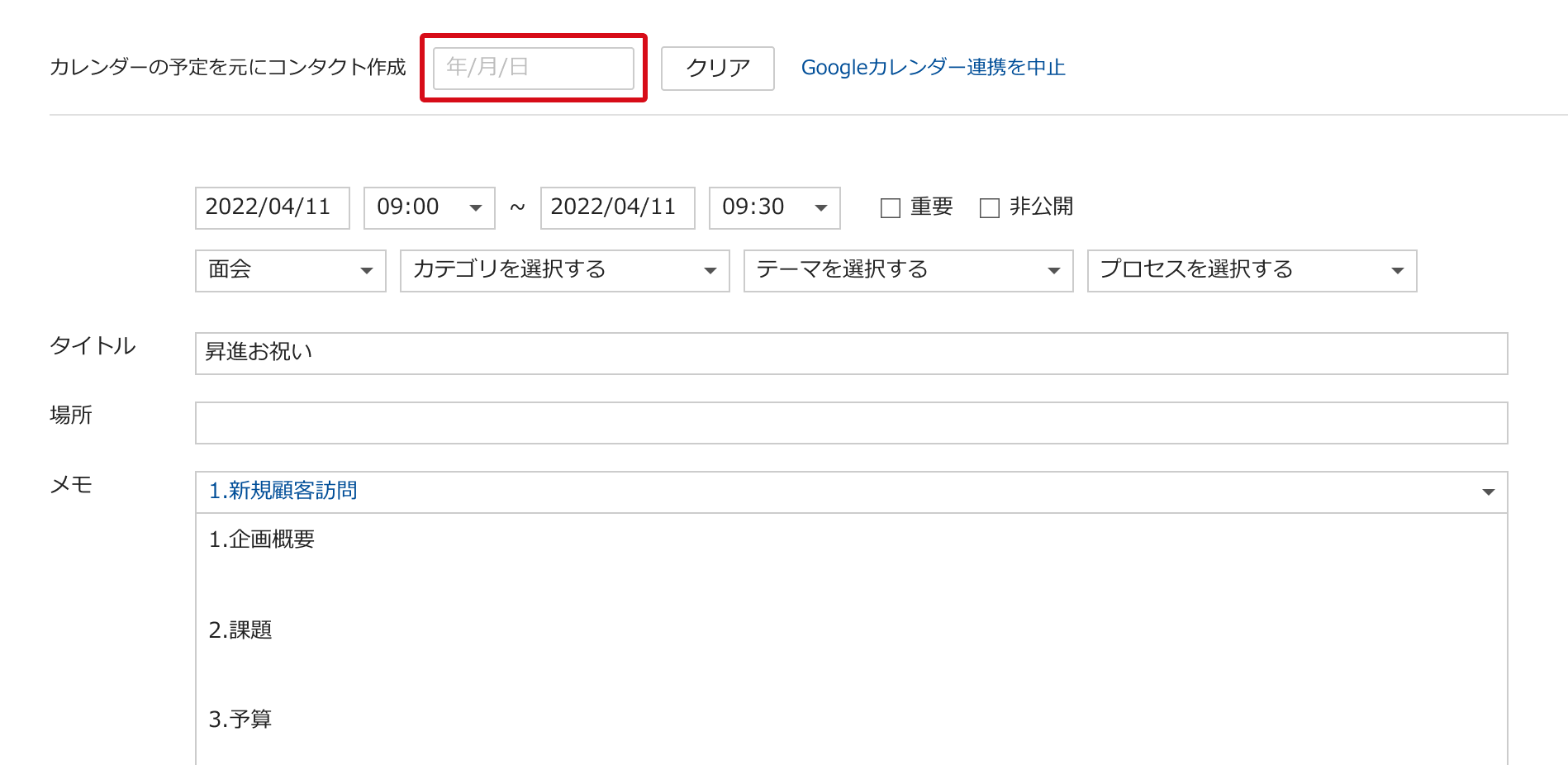 ・Sansanに登録されているコンタクト情報をGoogleカレンダーに登録することはできません。