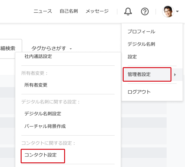 1. [管理者設定] > [コンタクト設定] をクリックします。