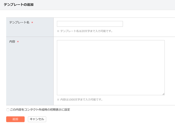 3. テンプレート名・内容を入力し [追加] をクリックします。