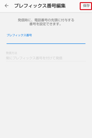 3. [プレフィックス番号]に対象サービスの番号を入力し、[保存]をクリックします。