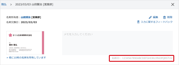 ・名刺IDを検索キーとして、名刺を検索することができます。詳しくはこちらをご確認ください。