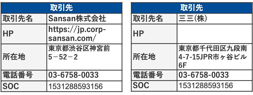 Sansan Data Hub はこのようなレコードに対しても名寄せを可能とし、同一企業(組織)と判定できた場合は同一のSOCを付与します。
