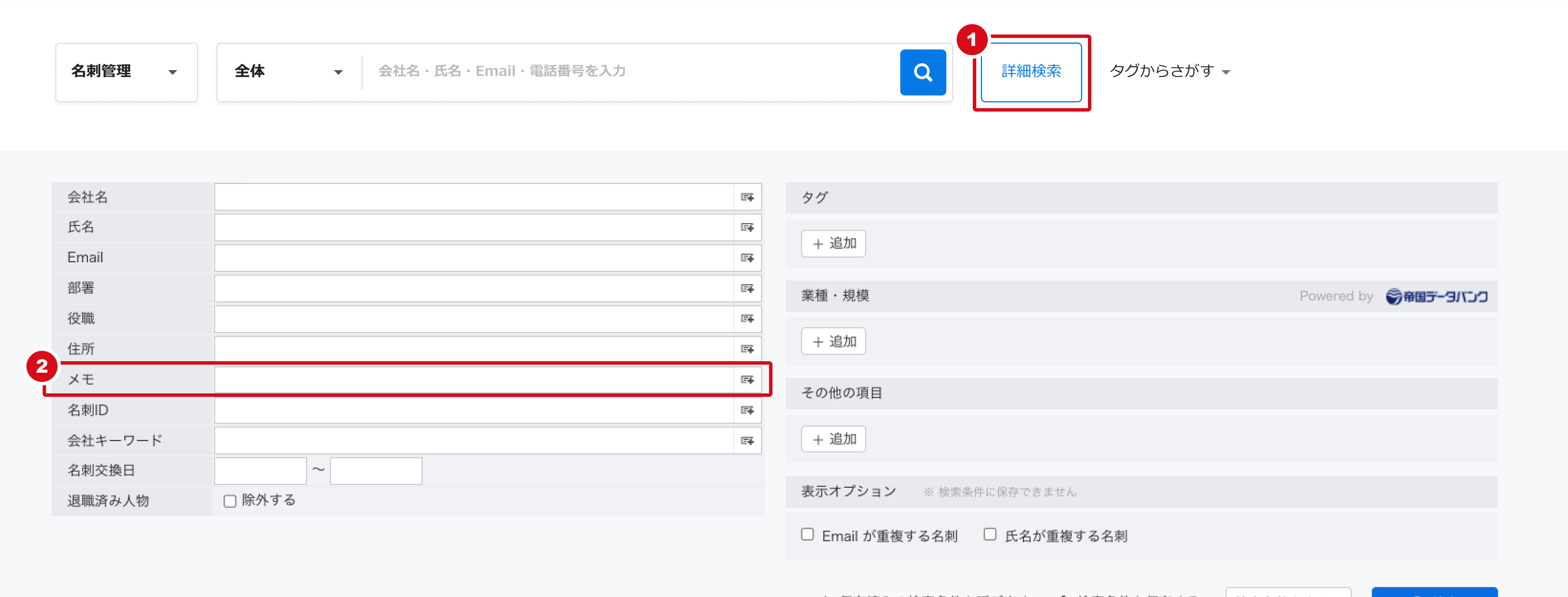 Q:登録したメモで名刺の検索がしたいです。