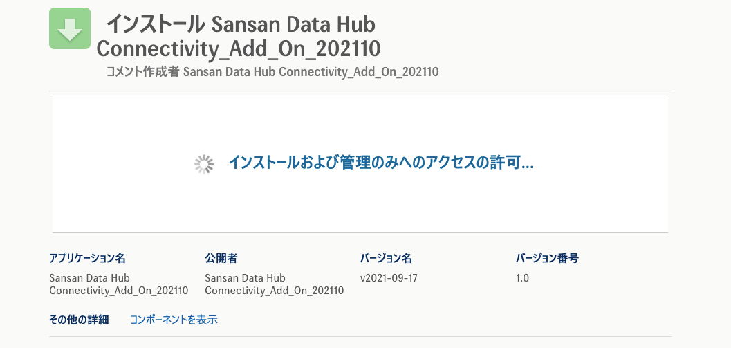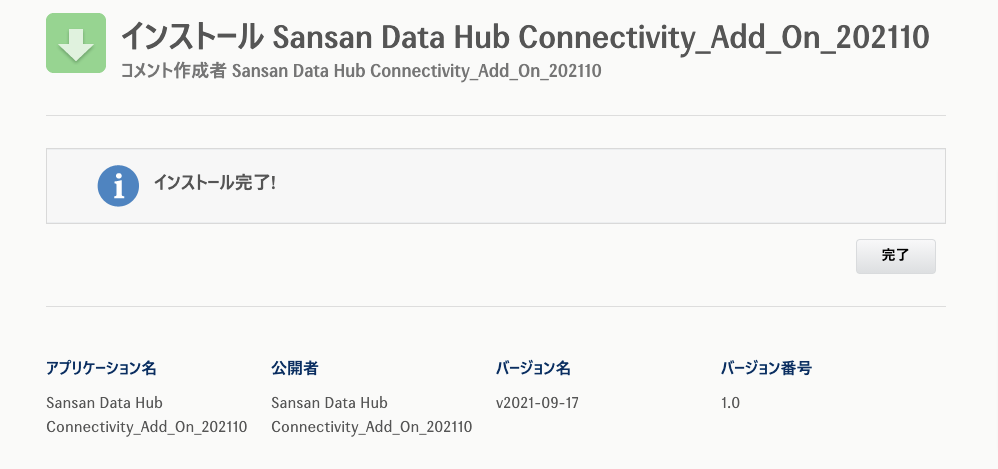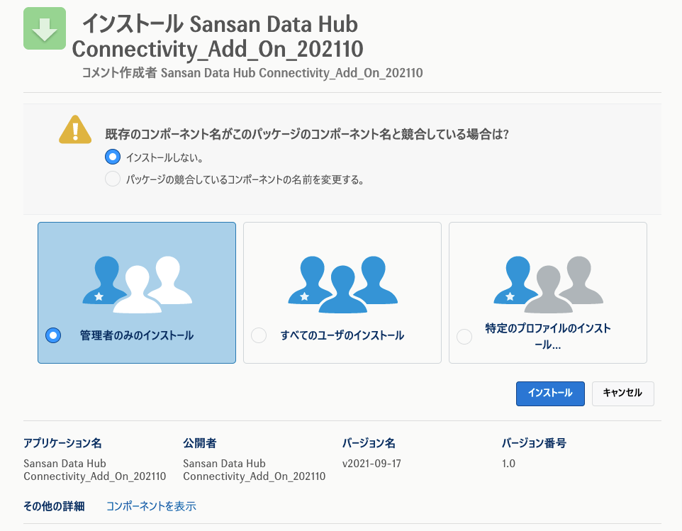 なお、本パッケージは「Sansan Data Hub Connectivity」のバージョン1.15以下が既にインストールされている環境が対象です。