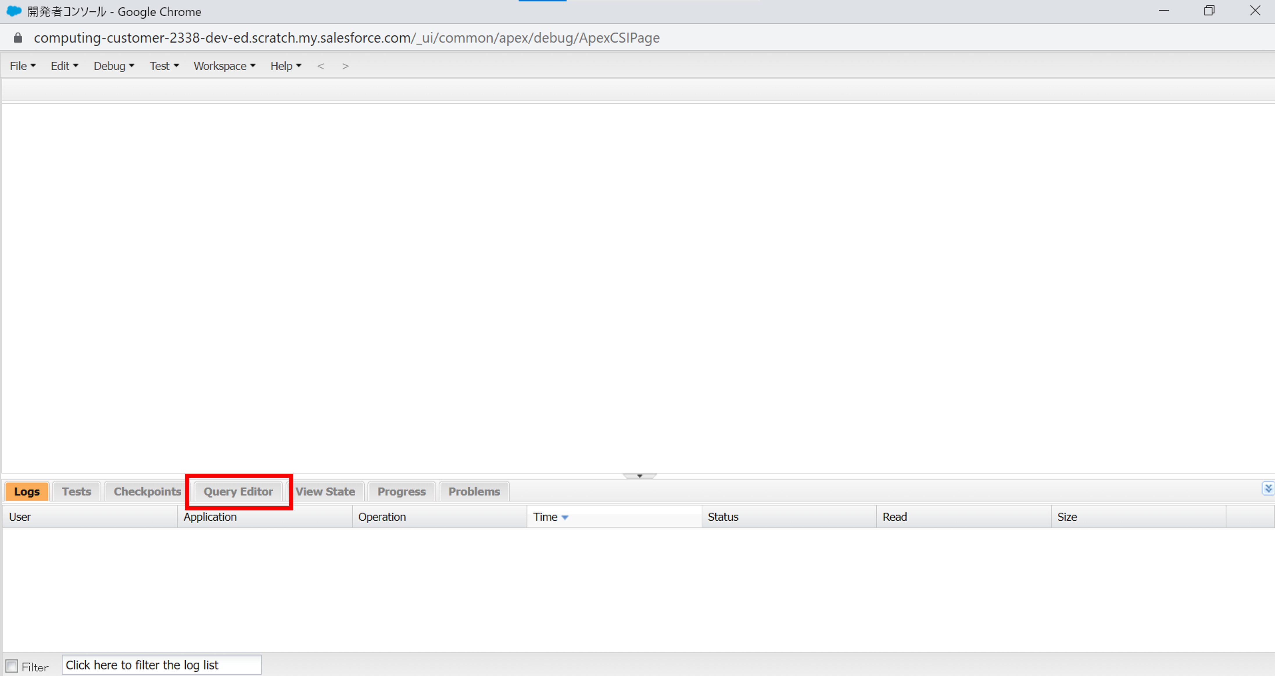 2. 画面左下にある「Query Editor」タブをクリックします。
