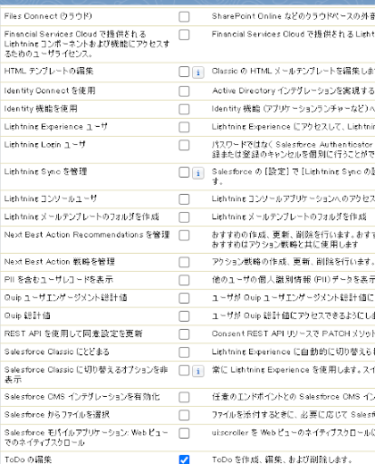 ※ プロファイル及び権限セットの画面はお使いのSalesforce組織の設定により表示が異なることがあります。詳細については 以下のSalesforceのヘルプをご参照ください。
